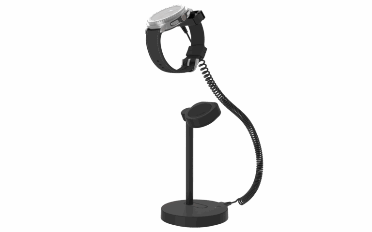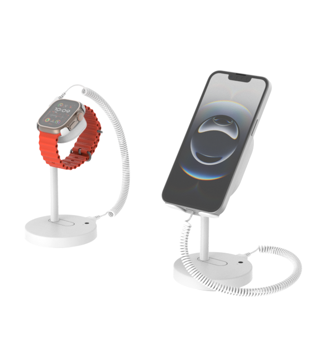 MagStand est conçu pour les présentoirs de téléphones et de vêtements destinés à la vente au détail. Il assure à la fois la charge et la sécurité grâce au chargeur magnétique Qi2 d'InVue. Il prend en charge les appareils Qi2 et MagSafe.
